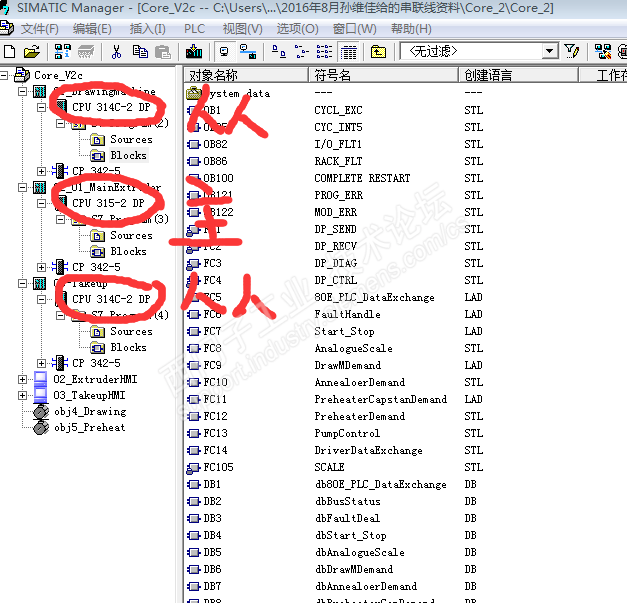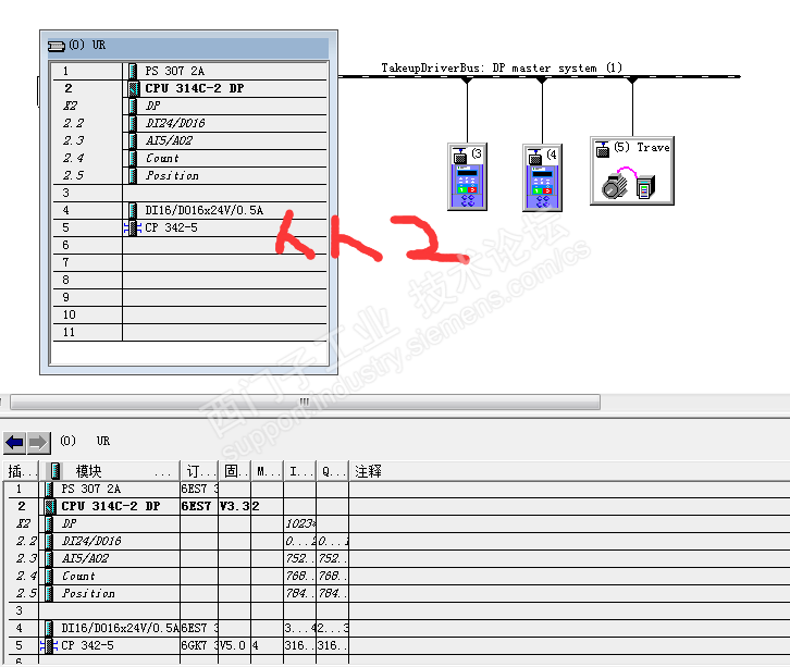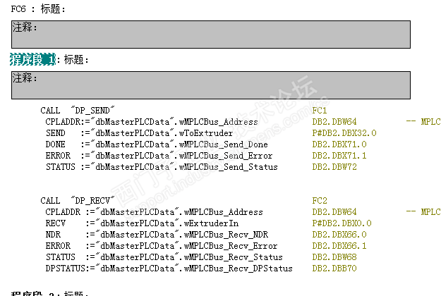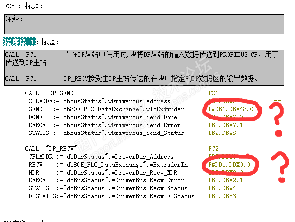 各位老师,大家好,我现在有一套程序是用CP342-5用来实现300PLC之间的主从通讯的,现在315作为主站,两个314作为从站,程序中有个不明白的地方就是,送出和接受的数据是应该用指针来表示的,比如主站中