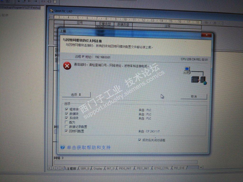 我用200PLC的编程软件通过网络连接PLC,最后程序能上载,但是出现通讯超时是怎么回事?会不会影响程序下载