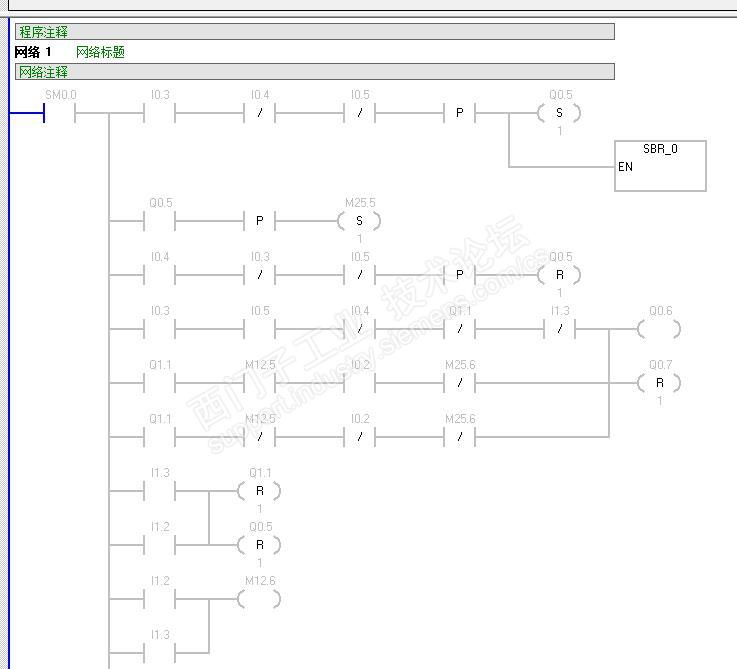 看到一段程序,不知道为什么主程序里监控下来网络一里 SM0.0不接通?