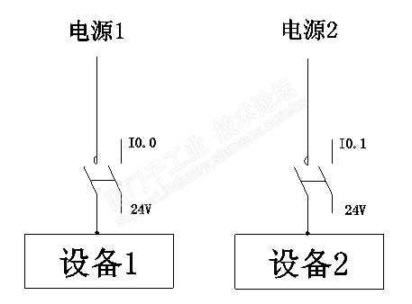 改造后:I0.0=1或I0.1=1表示设备1有电源