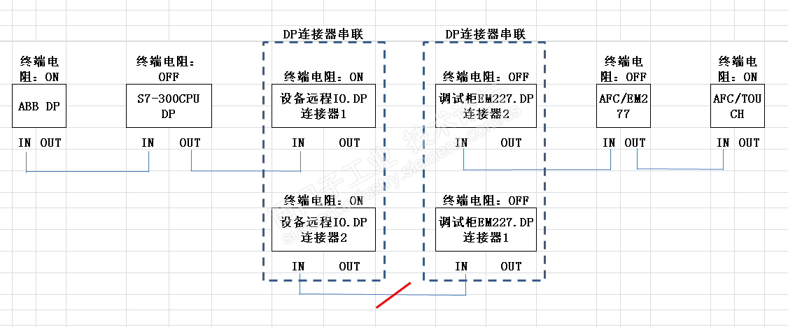 下图现场网络图,DP连接器串联终端电阻设置如何理解?图纸确实是这样要求的,调试也没有问题,求解