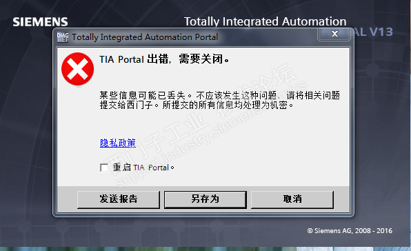 有没有好心人帮忙看下这个TIA Portal打开时出现这个错误的原因?新装系统没杀毒软件,TIA up更新了到UPD9了还是不行
