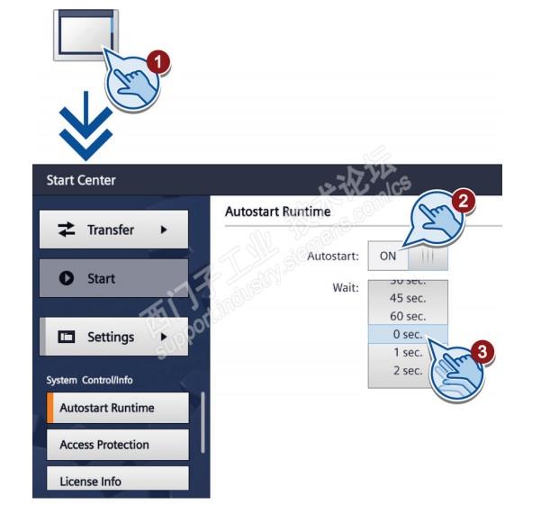 Start Center→setting→autostart runtime→0sec