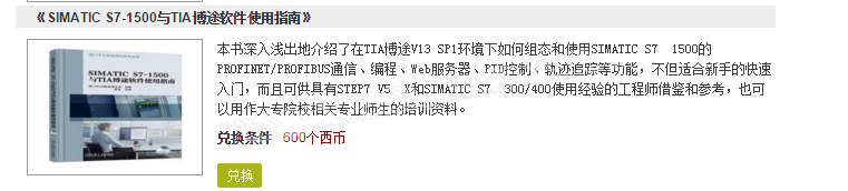 补充,刚发现兑换区有《SIMATIC S7-1500与TIA博途软件使用指南》了,还是需要600西币换这个呢?