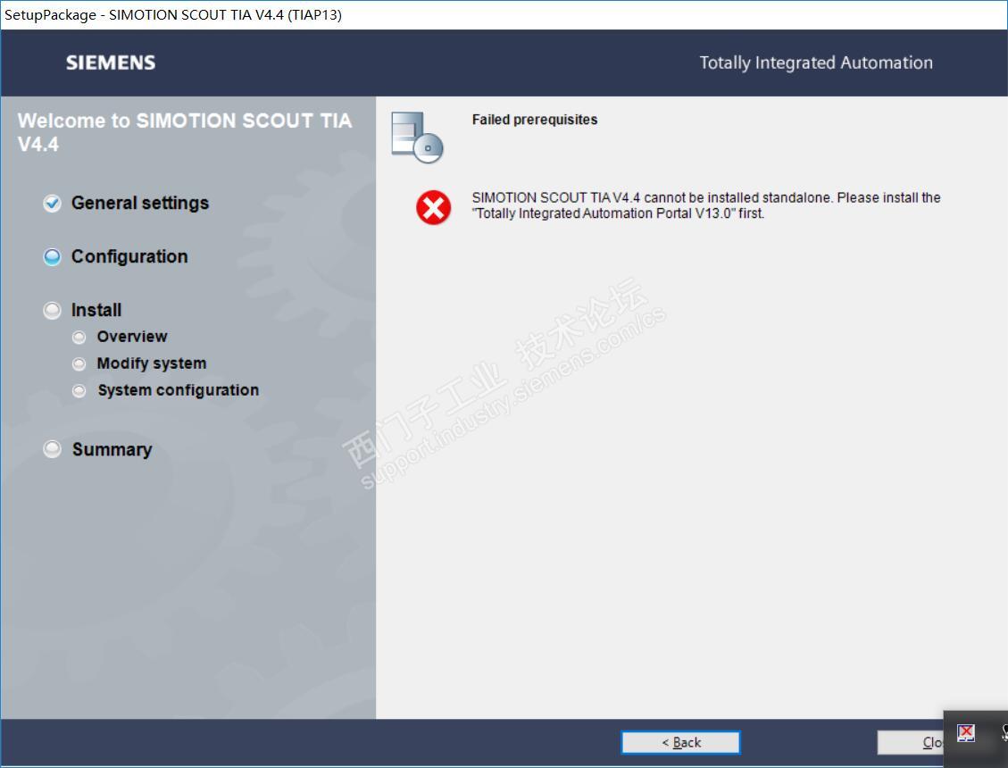 以前安装过没有问题,后来换了电脑用了win10安装博途也没有问题,准备装simotion了就报错没有博途V13