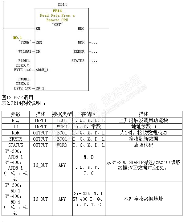 S7-300/400通过以太网接口与S7-200 SMART PLC 之间的S7通讯经过测试是可以成功的,但是需要S7-300/400侧编程调用PUT/GET指令,见表1所示。
