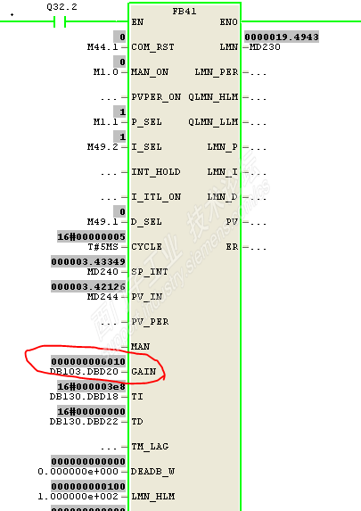 处理过程:查找FB41外围的信号和其他机器比较没有异常,DB103.DBD数值是10,我曾经怀疑拉力反馈信号有问题,调整背压N2,F拉:有变化,但是数值是其他设备的两倍。