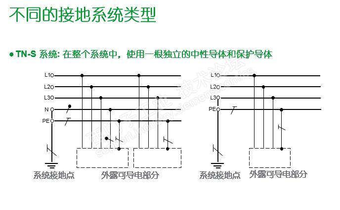 应该是TN-S吧, 电源侧是T大家都认可,用电侧虽然没有零线,但是命名考量的是"装置的外露可导电"部分与地的关系,而不是有没有零线,用电侧的装置显然没有直接接地,所以第二个字母应该是N,又因为没有零线,所以PE 和N 是 Separated,所以应该是 TN-S