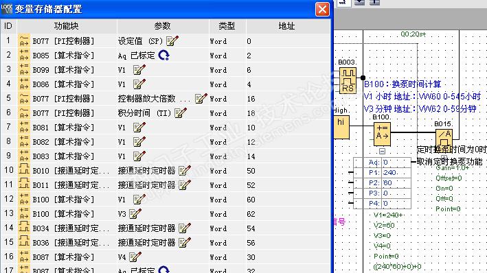 图1 参数映射:B100的V1地址是VW60,单位:小时;V3地址是VW62,单位:分钟