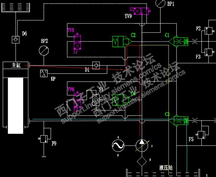 变量泵供油,用旁路主油管的流量来进行调速,岂不是白白浪费变量泵的变量能力?要得到慢速的时候需要旁路很多油到油箱,此时变量泵会自动变量到最大值适应回路的需求,(你旁路是你的事,泵认为这是你的需要,所以把变量变到最大)此时又大压力,流量又大,但是大部分都由旁路的C1流到油箱了。这合理吗?