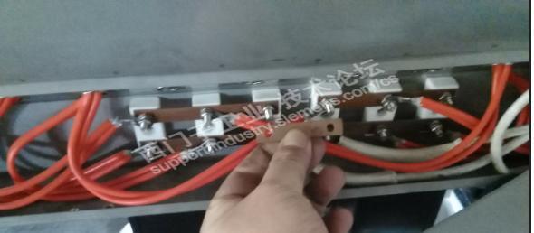 二个220V的发热圈串联后接入380V,相对于每个发热圈得到的电压为190,功率减少了25%一些,刚好实际配置的发热圈功率偏大了一下,且正常生产时挤出机使用的加热功率很小,这样改进后对生产工艺没有什么影响,但是提高了加热控制的安全及可靠性,首先损坏了一个固态继电器直接通路时,还可以正常控温,不会造成温度失控,此外加热电流减少,也提高了发热圈的使用寿命。