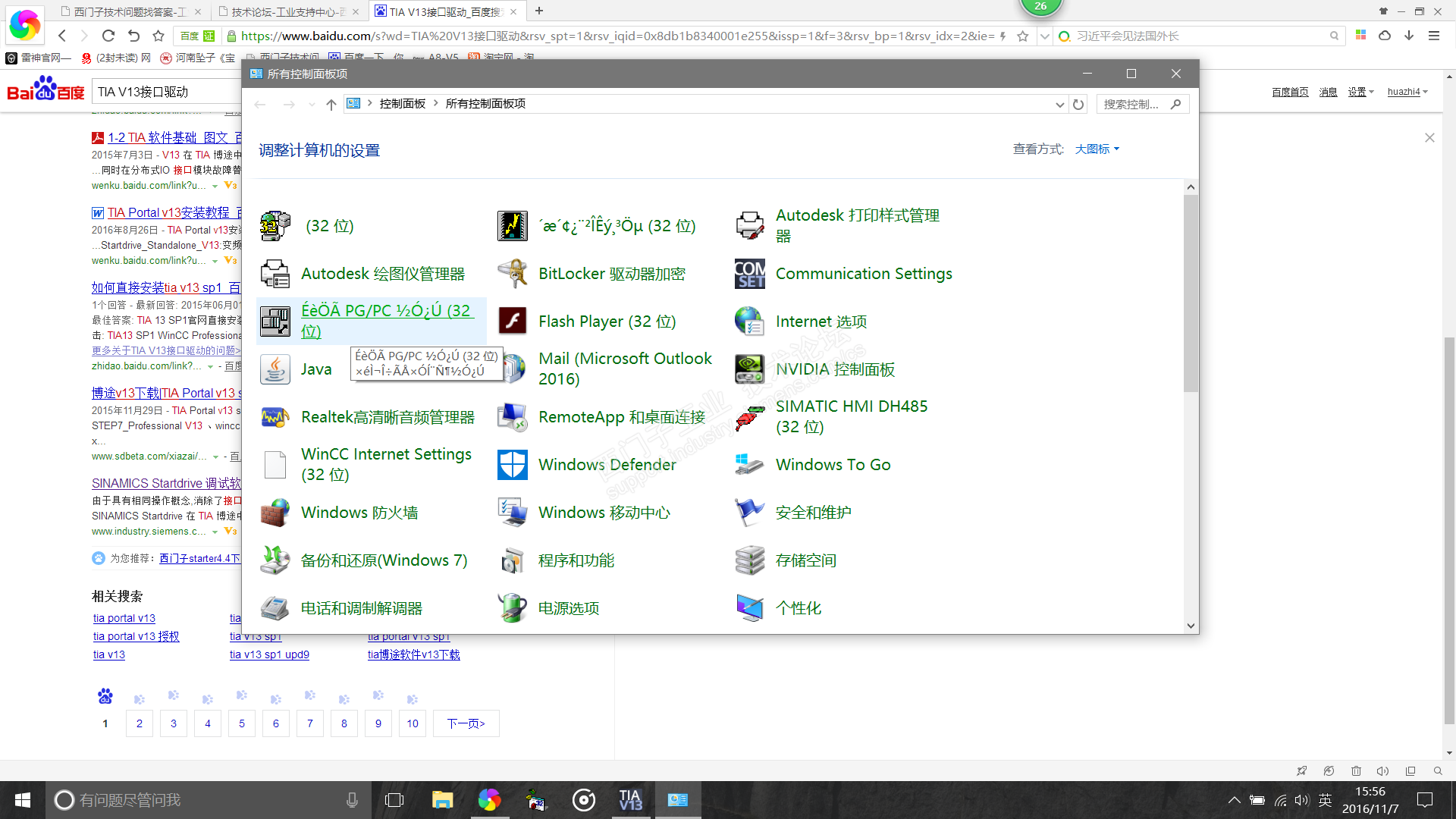 TIA根本不需要去《控制面板》调整什么SETTING PC/PG。与那个无关,是用博图自己的。