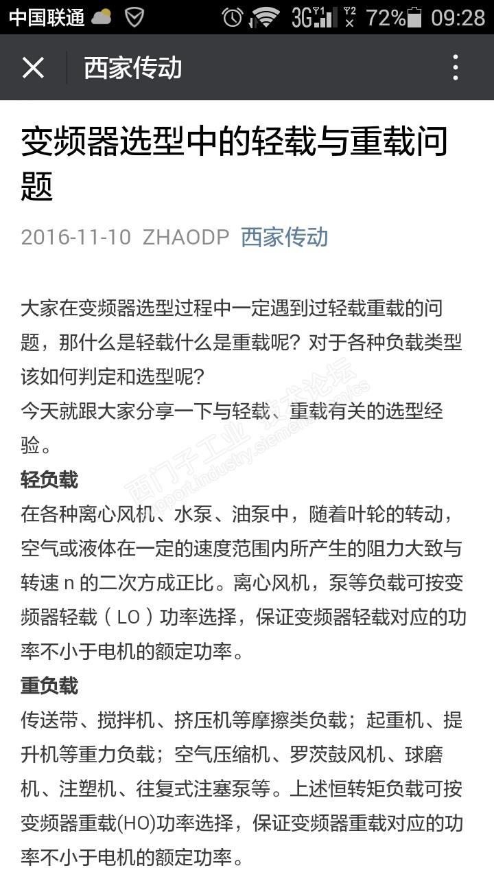 最近在微信公众号西家传动内有一遍关于重载及轻载的文章。