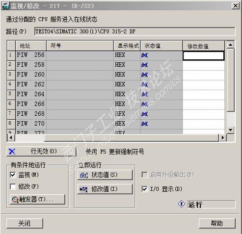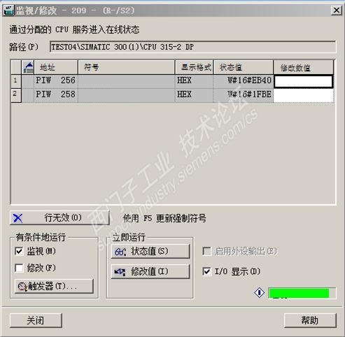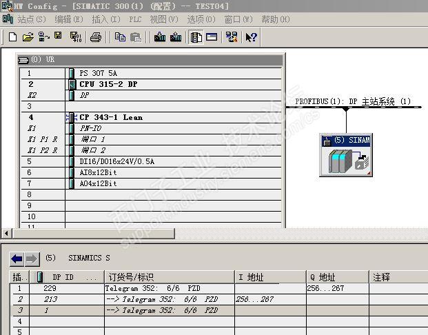 315-2DP和CU320之间通过DP通讯。315-2DP的型号是6ES7 315-2AF03-0AB0 / V1.2,CU320的型号是6SL3040-0MA00-0AA1,CF卡的型号是6SL3054-0CG00-1AA0,版本是02.06.01.00。使用DP通讯,配置好CU320的总线地址为5以后,插入Telegram 352:6/6 PZD的报文格式并下载到硬件组态里面,然后选择监视/修改PIW的地址,结果出现”无法监视该地址“,6个PIW的字全部是这样的情况。后来把报文改成Std.Telegram 1:2/2 PZD,这两个PZD字监控/修改没有任何问题。但是对于变频器来说,2个PZD字不够用。请问各位老师,我的设置错在哪里?