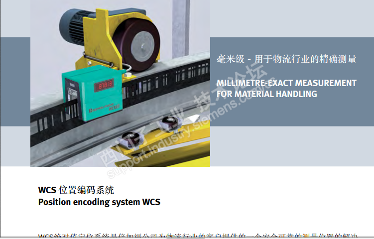 另外粉尘厉害的话还有一种WCS绝对值系统与PCV基本原理是一样的,只不过他的码带是带孔洞的钢带,读写头成N字形读取码带的孔洞换算成绝对地址,这种WCS系统可以解决粉尘的问题。WCS也是P+F的。精度的话能够±0.5mm没问题,码带300m长也没有问题。