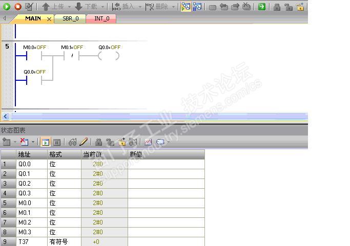 3) 编译,保存,无错误后下载到cpu,并启动监控: