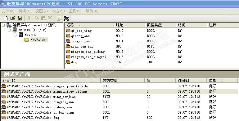 4) 编辑200 smart OPC组态(方法参考S7-200 PC Access SMART的使用),并监控: