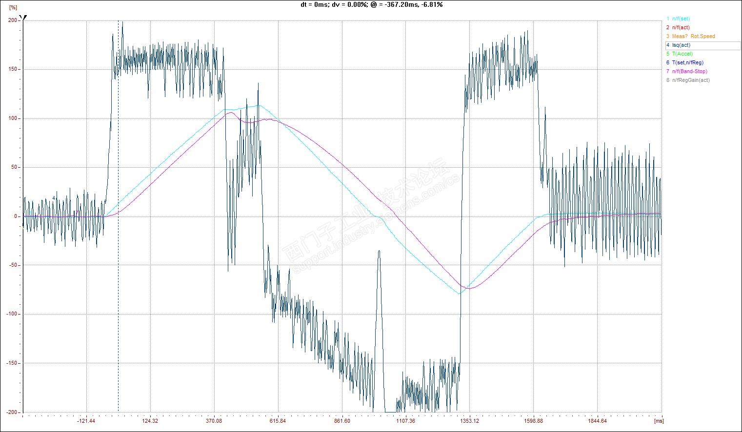 一台飞剪,6SE70装置,机械反应齿轮箱异响,检查电机码盘没问题。抓图如下: