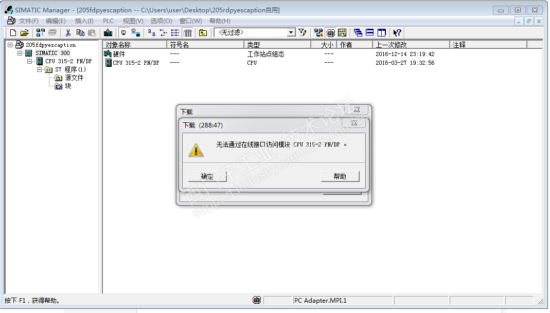 最近不知道是软件安装太多还是什么原因,我打开程序后,再打开仿真器,选择了PC ADAPTER MPI接口,下载程序提示不能连接315-pndp,而且打开仿真器,上面的DP灯是红色,运行状态也是红色,总之就是不能连接,还请哪位有经验的大师给小弟指点一下,多谢了。