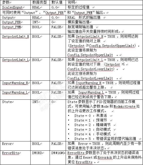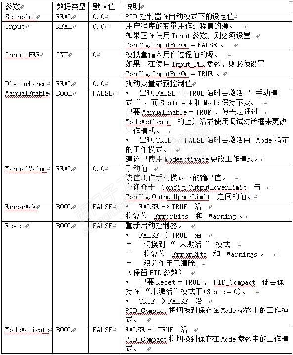 PID_Compact V2指令的输入参数参考表11- 2、输出参数参考表11- 3、输入输出参数参考表11- 4。
