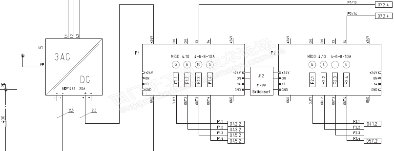 德国穆尔(MURR),挺好用的,如果发生短路,过载,立刻切断电源,表面显示红灯,再想恢复,就按一下表面的显示灯就恢复正常了。