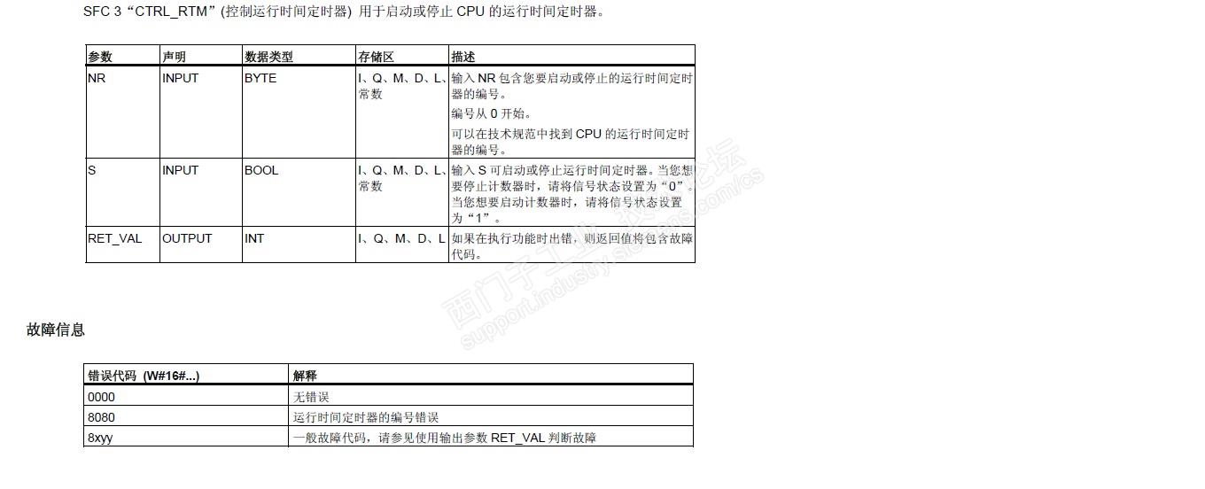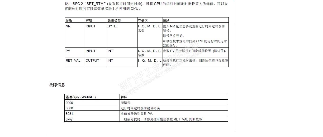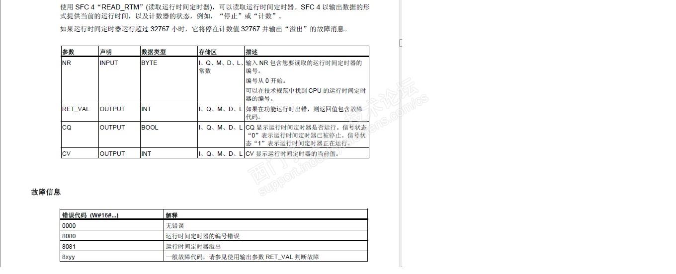 SFC 4“READ_RTM”用于读取运行时间定时器。SFC2、SFC3和SFC4各个管脚定义说明见下图。