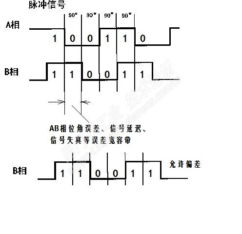 好比上图的AB相错开90度的相位角而不是180度,在容错模式下可允许A和B的角度偏差可达±45度相位,包括内部传感器的读取延时与失真,方波输出波形延时失真,干扰产生的小峰。在容错模式下你不要去读上升沿下降沿,而是用AB2位的0/1码去读和解码。当然这会影响响应速度,需要高速芯片,但这样防止丢脉冲和抗干扰效果就很好。如果是180度相位差就没有这样的容错可能了。