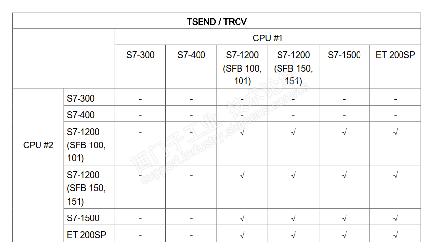 中间说支持1200 1500 ET200SP之间的TSEND指令