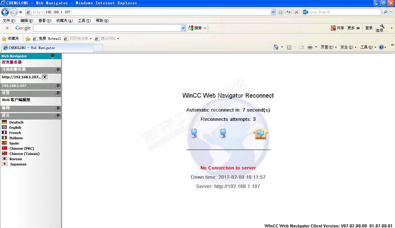 我用自己的笔记本装了个wincc7.2,又装了web发布的服务器和客户端,web站点、画面、登陆用户都创建好了。也按着视频上做了,但是就是连不上服务器。