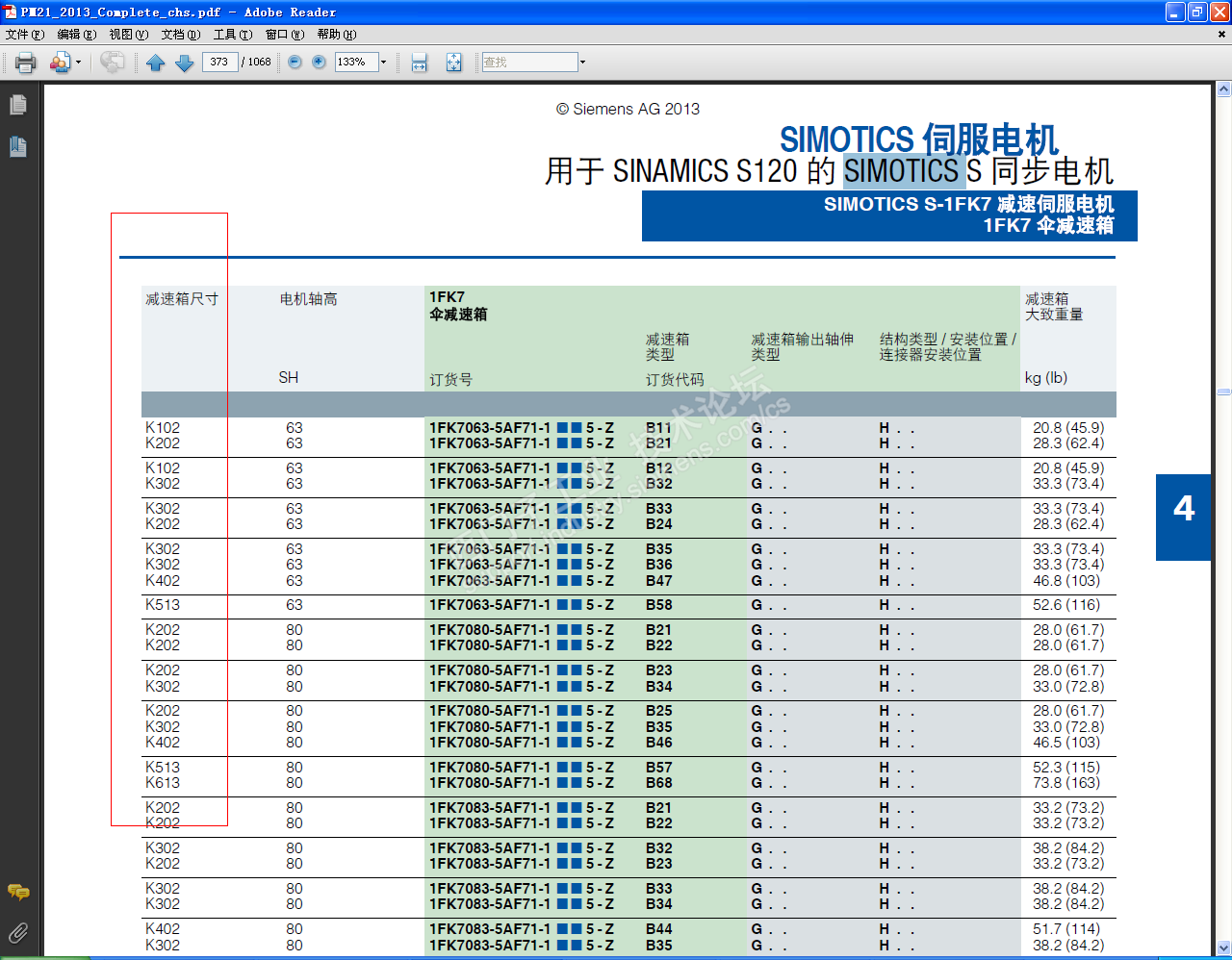但不清楚减速机K713空心轴的尺寸,我的手册是PM21_2013、P372/P373页