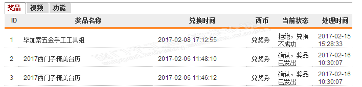 新的一年新的气象,作为一名不经常使用西门子PLC的我来说这样的活动着实让我有些感动,在同事的推荐下参与起活动了,不成想会是这样的结局,通过不断努力拿到兑换券后,开心的兑换了毕加索五金工具组合,不成想却被拒绝,也没有给原因,后经查看此奖品已经下架,不知道是不是已经发完的原因,若是此原因试问我的兑换券哪里去了呢?能够返还再兑换其它礼物呢?希望坛主看到给以解释,希望还能让西门子的温暖感动到我。