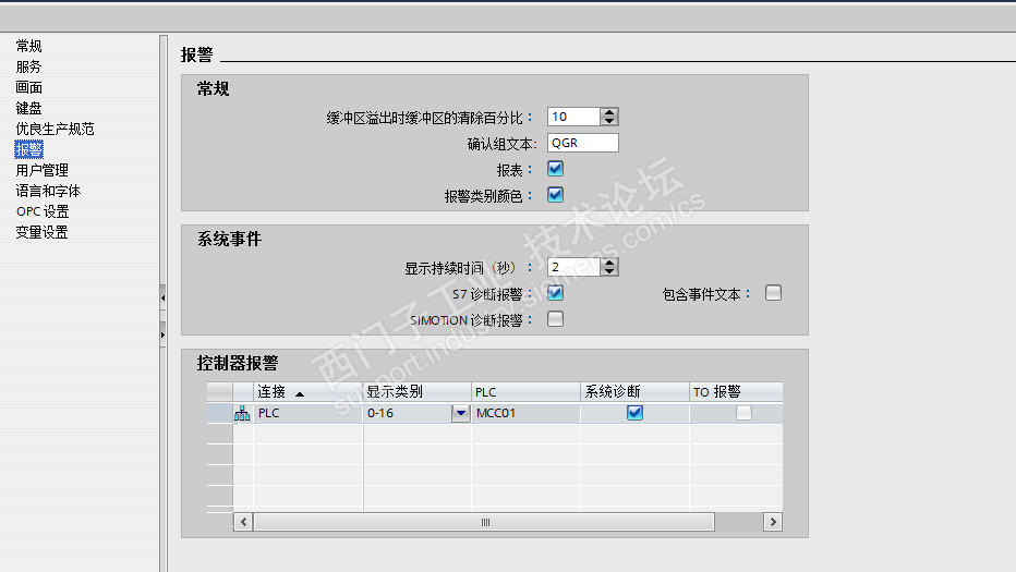 使用TIA博图面板1500做报警时,出现系统运行时,报警类别组态的颜色显示,改了报警控件的属性设置也不行,最后找到原因是“报警类别颜色”的选择框需要勾选。