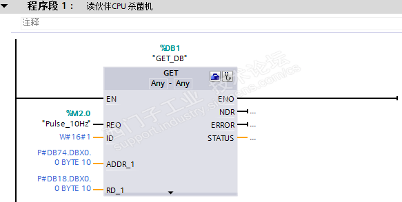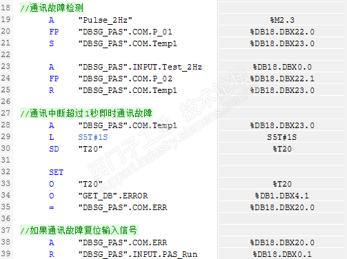 以太网S7通讯,当网络中断时,DB信息无法进行更新,保持原有状态,这时读取的DB块信息不是实时信息,虚假信息会对设备造成严重后果,所以必须对读入DB块信息进行复位,设备报警、必要时快速停机。