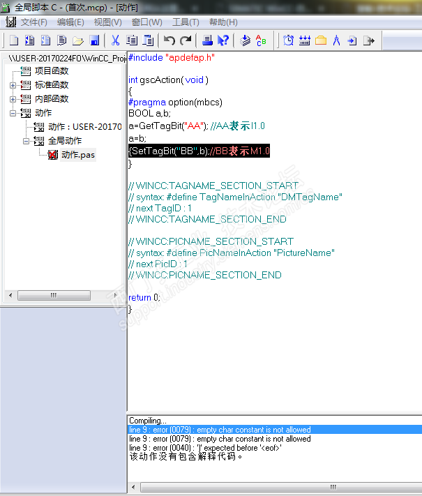 WINCC怎么用全局脚本把I0.0的值传递给M0.0,用C语言编程,或者VB都可以