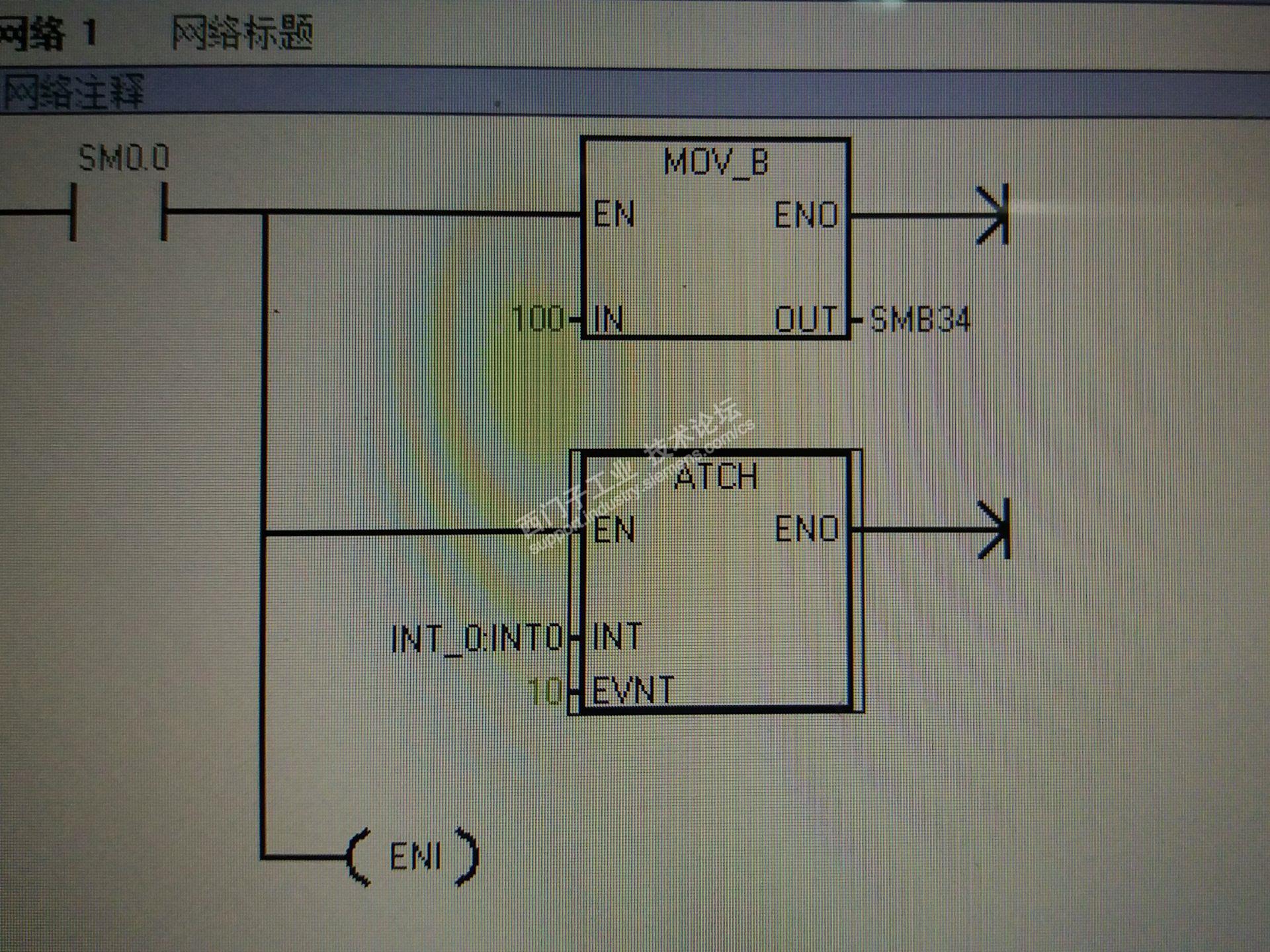 手册里的定时中断简单例子,这里SMB34初始化为100ms,更小的值也试过,波形一样。
