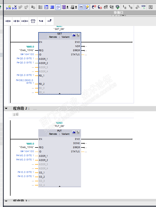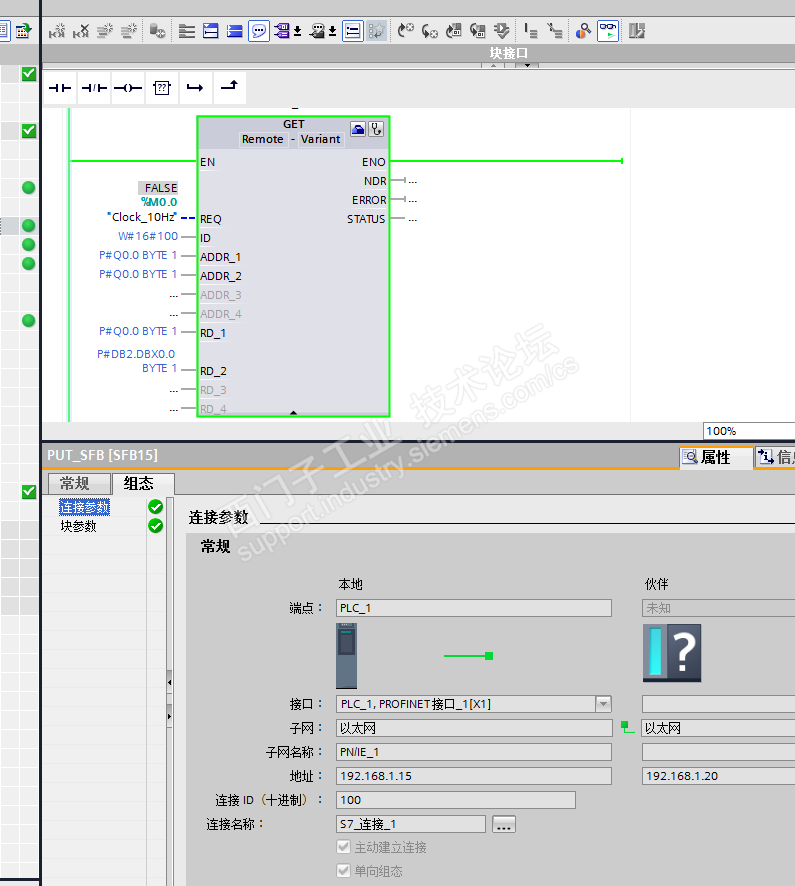 添加程序块,设置连接参数,程序块和链接参数如1500侧程序和连接参数设置。