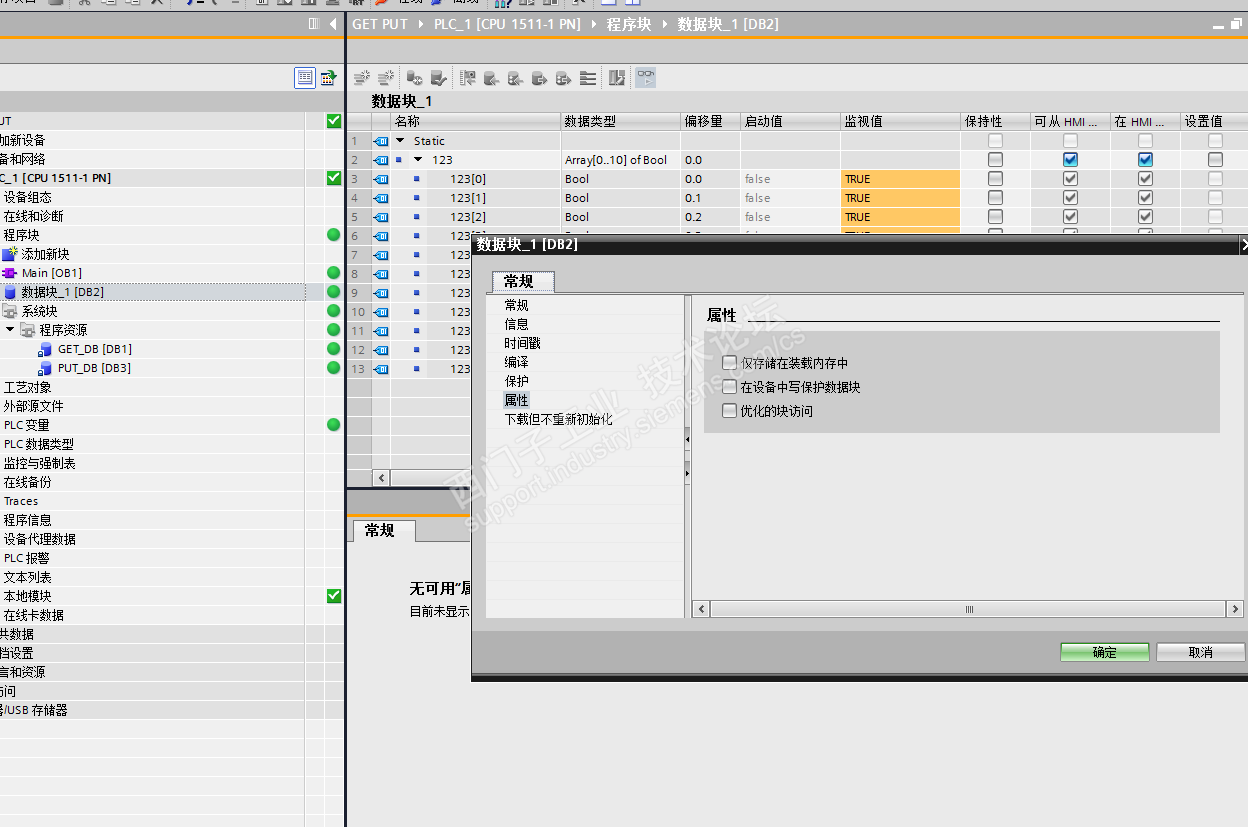 在添加全局背景DB块的时候需要设置为非优化的,如图不能优化所示。