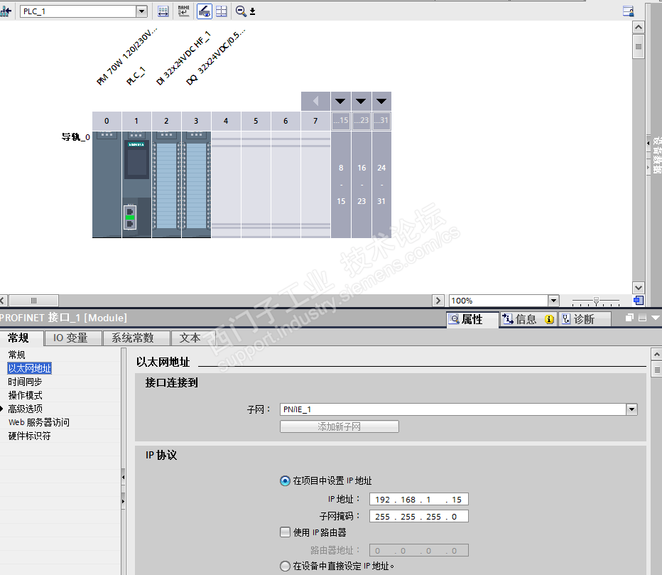 在1500程序中添加设备建立站,设置时钟M0.0在程序中要用到,如图1500设置时钟。子网IP地址也需要更改如图子网IP地址。