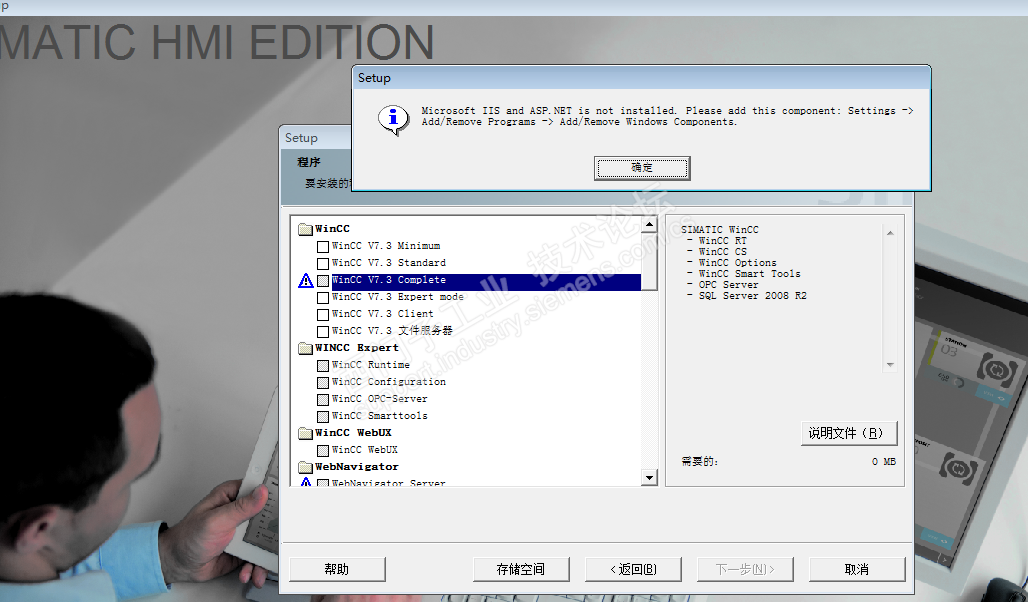 之前用博图WINCC V13 SP1做PC station 组态RT ADVANCED做数据记录,以趋势曲线。问题解决不了。不知道是不是不能实现,问题没有解决。在网上,有找出不少wincc v7.3解决此类问题的案列,遂进行安装wincc v7.3,不过刚开始,就出现下面问题,进行不下去了。主要是软件安装问题,尝试10多次仍然解决不了