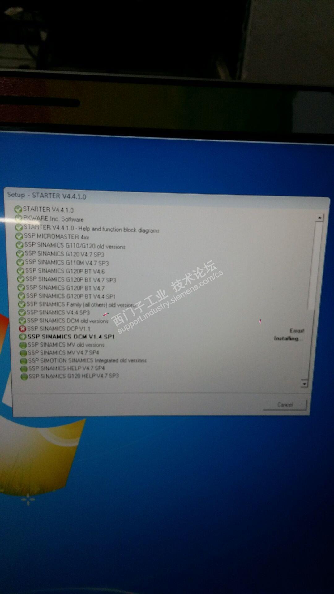 本人学生一枚,正准备参加西门子的比赛,我是运控组的,但是从安装starter开始就被打击的体无完肤,用了win7专业版旗舰版sp1的系统,系统换了十几次,安装包下载了4个,但是都没有一个是安装成功的,现在只能用虚拟机安装,但是问题又来了:建立工程之后安装驱动时无法继续进行,详情看图。