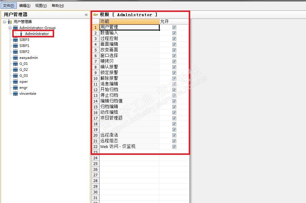 最近在药厂拷贝一个WinCC 7.0项目移植,这个项目是带Audit功能的,在登录界面后,administrator账户数值输入权限都有的,如图所示。
