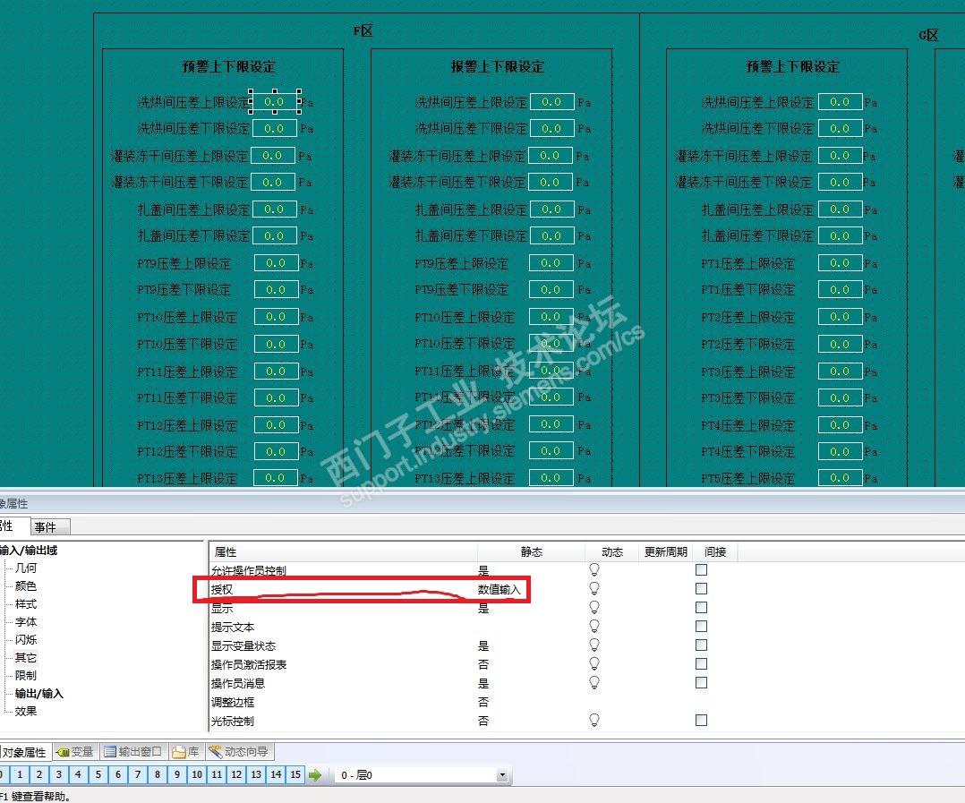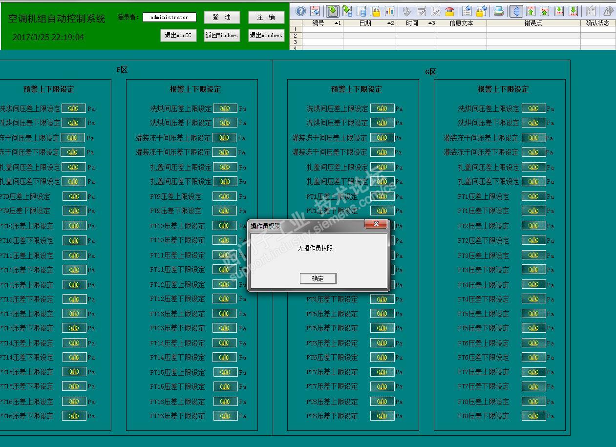 当WinCC激活后,在页面点击设定压力的IO,弹出“无操作员权限”的对话框,如图所示: