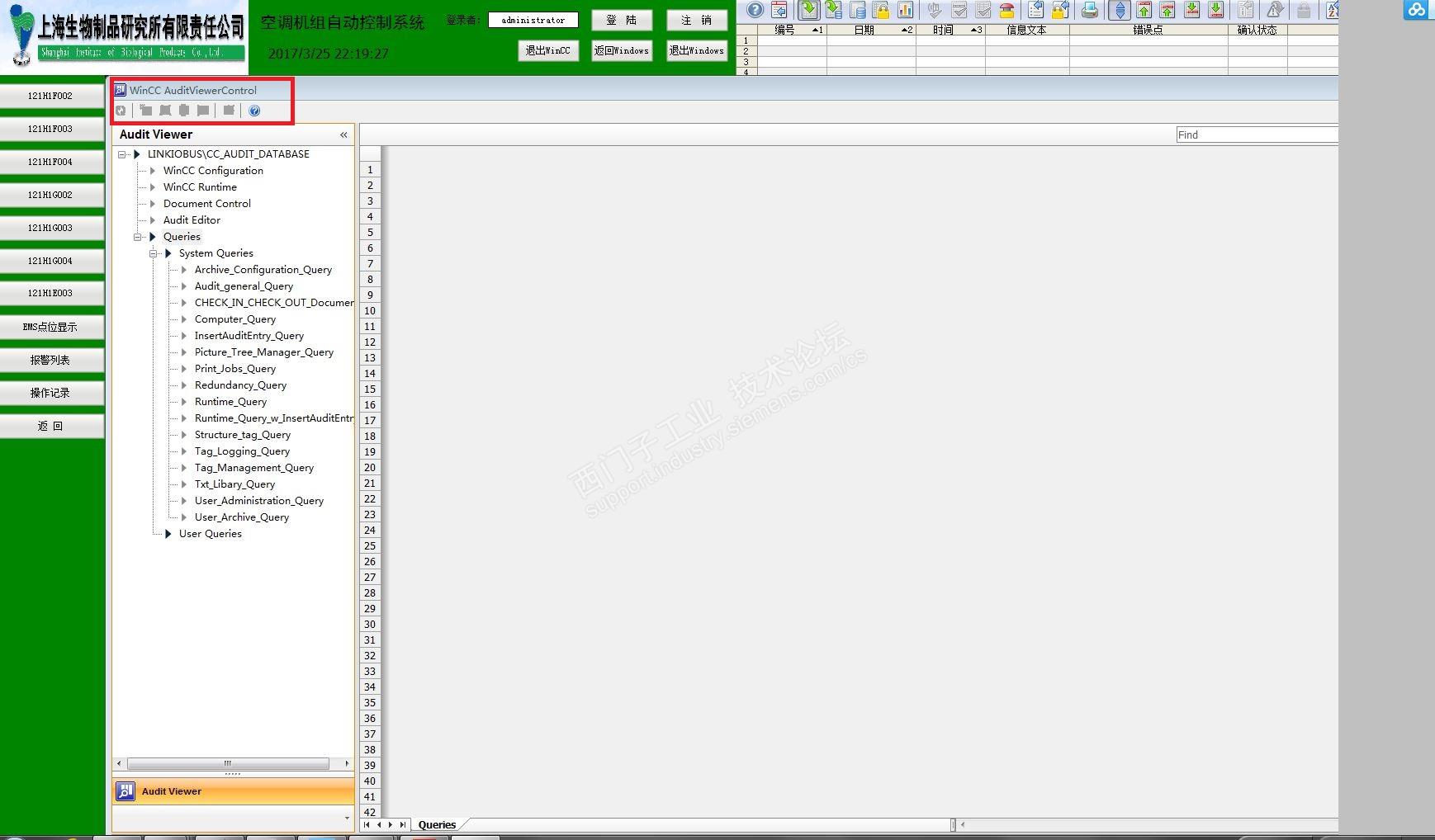另外在操作记录Audit界面,WinCC AuditViewControl画面下的几个按钮都是显示灰色,如下图所示,是不是哪里没有设置好。