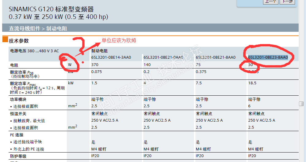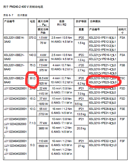刚才看了选型手册里面,确实有每种功率单元对应的制动电阻大小,