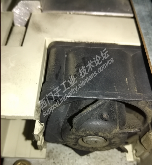 昨天晚班说又报警了,今天白班我用手摸了模块烫手且与其他模块相比明显温度高。所以停机准备把模块拿下来清灰,拆的过程中如图1电机插头烧焦粘在插孔里了。拆下模块发现风扇如图2,我换了风扇和电机插头。