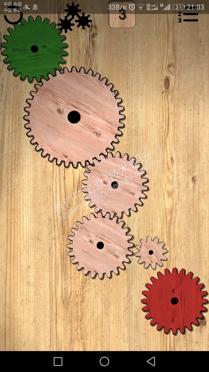 下面是一个游戏截图,想要测量红色齿轮的转动角度,由于机械原因,编码器只能安装在绿色齿轮轴上,这时就要计算各个齿轮的传动比才能根据编码器的读数计算出绿色齿轮的转动角度了