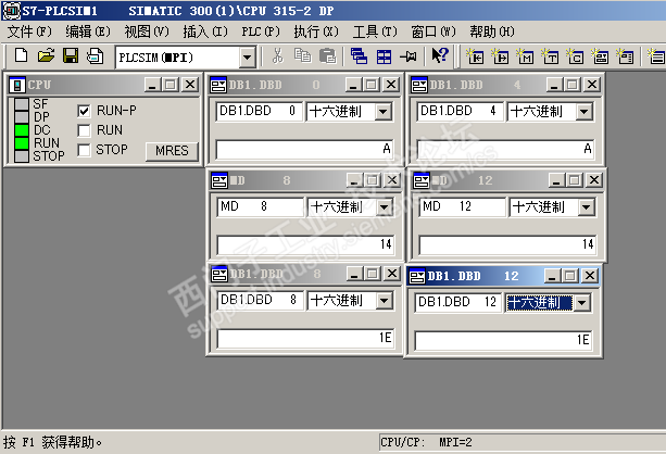 在OB1中多次重复调用FC1(第二次引入MD,主要是想看一下M数据和DB数据的调用区别)