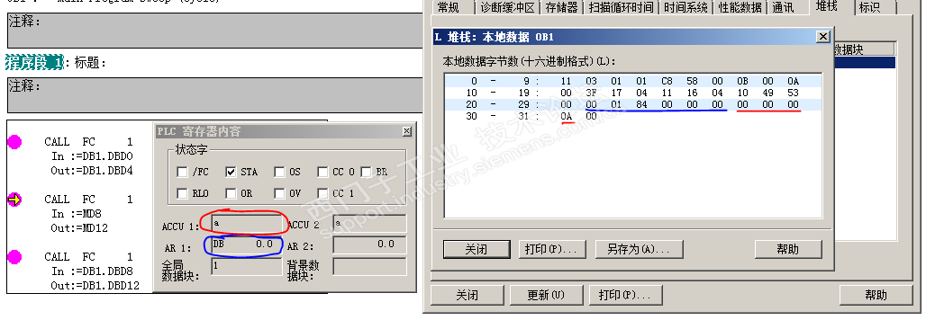 1、在OB1的L堆栈中,LB27-LB30保存DB变量数据,并传递给此时FC输出对应的DB变量;