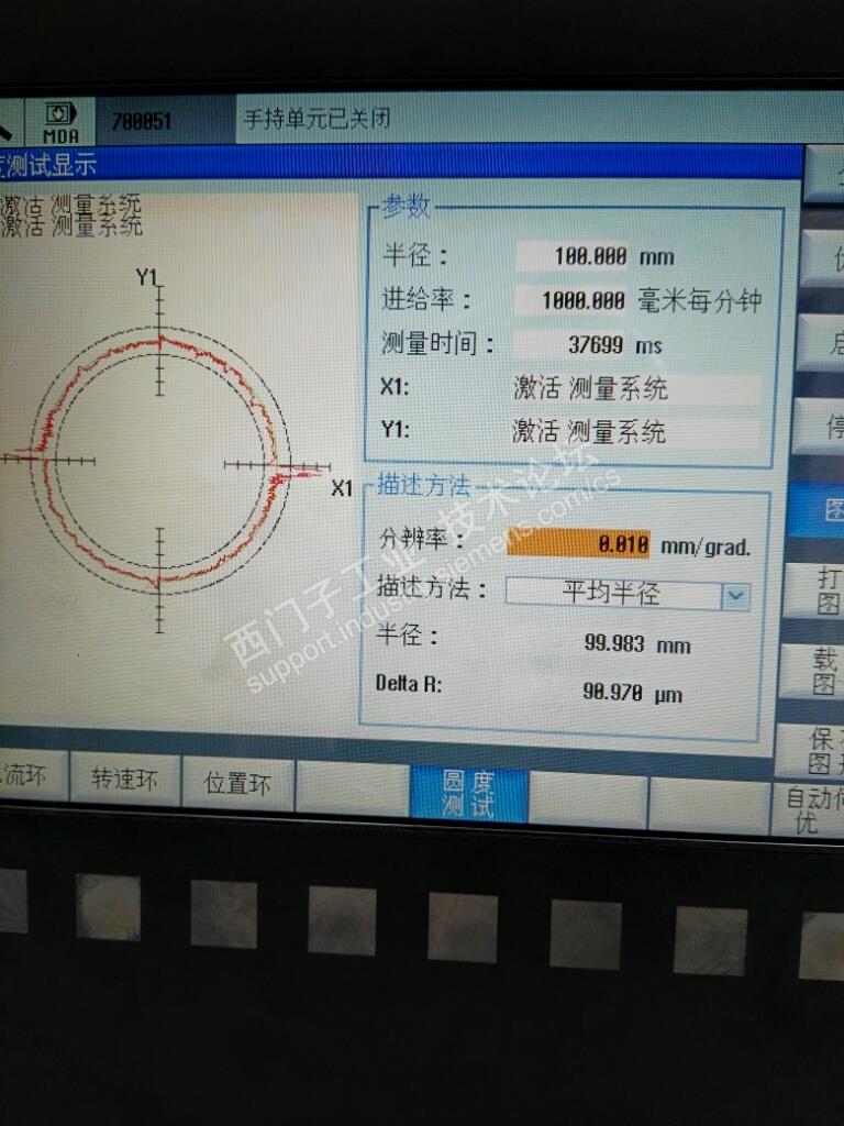 圆度测试如上图,32500=1,调整了32520/32540/32200/32300/32450没有改善,故障依旧;