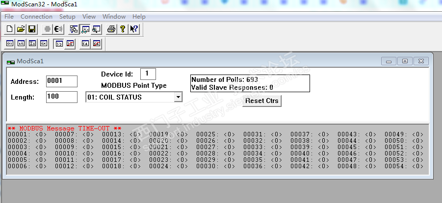 用Modscan做主站时一直出现:MUDBUS Message Time-Out,怎么回事,如何修改(通讯电缆如)?谢谢